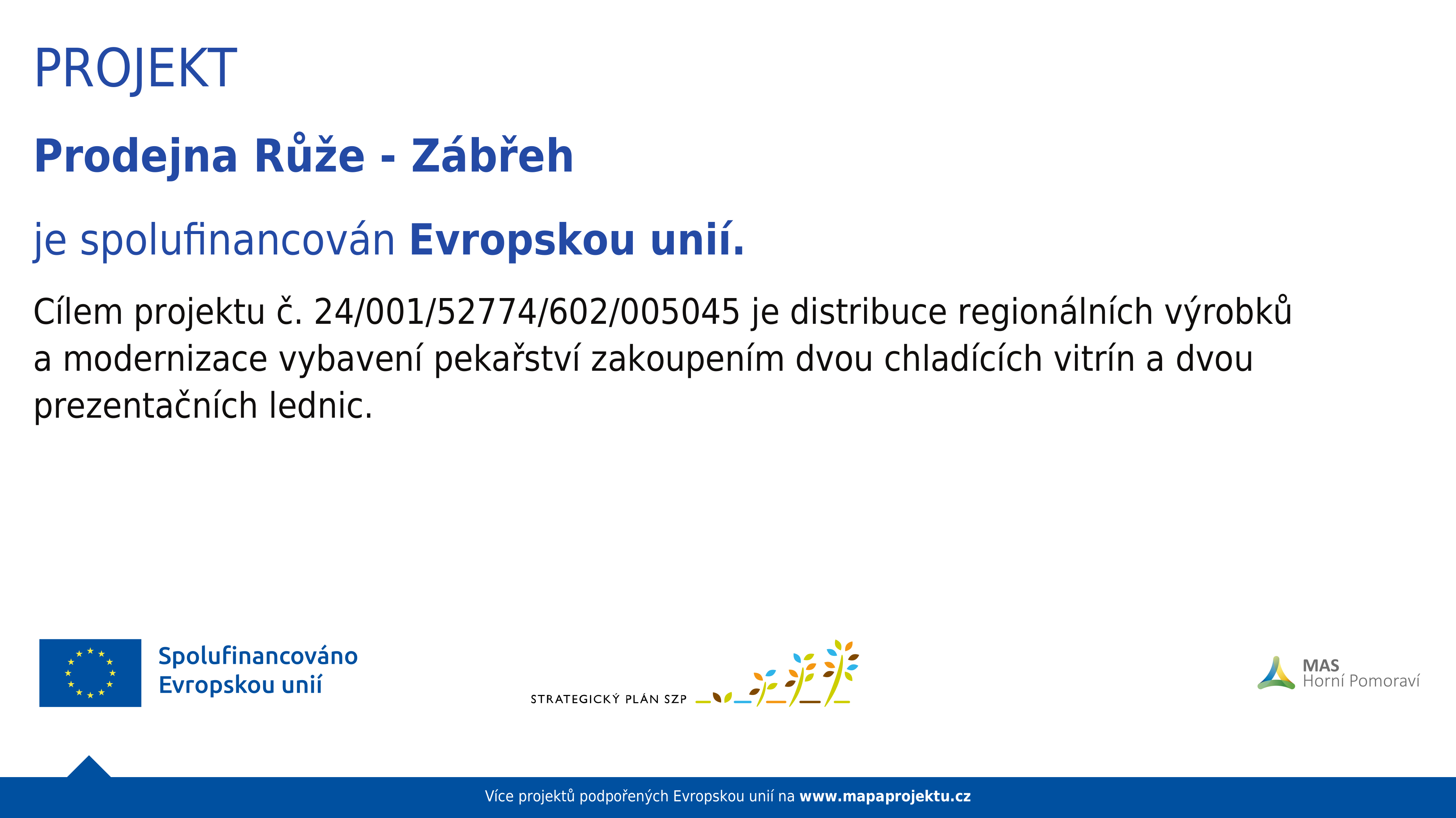 Projekt: Modernizace vybavení pekařství zakoupením dvou chladících vitrín a advou prezentačních lednic je spolufinancován Evropskou unií.